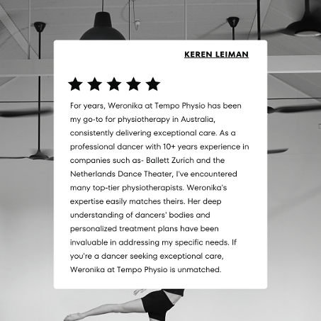 Tempo Physiotherapy supports all your needs from an assessment to advice on conditioning and training load management. We help you get through an injury and recover stronger than before. We help you manage and understand scoliosis and hypermobility so that you can remain safe in your dance training.